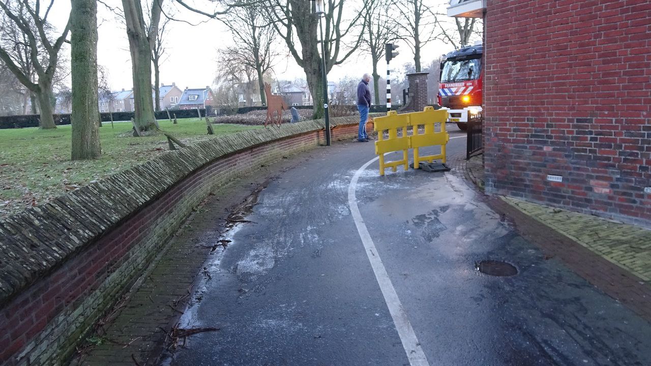 Bij aankomst van de brandweer bleek dat het water al onder de aangrenzende huizen door liep, de brandweer heeft met een pomp het water afgevoerd. Het lek bleek onder het asfalt te zitten, Vitens gaat de lekkage verhelpen, de gemeente Noardeast-Fryslân heeft zout gestrooid i.v.m. de gladheid. De weg is tijdelijk afgesloten voor het doorgaand verkeer.