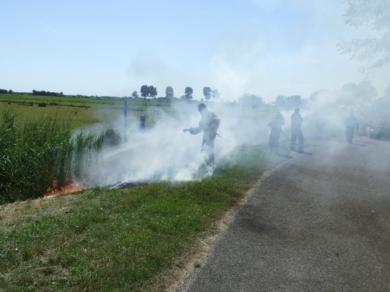 Maandagmiddag moest de brandweer opnieuw uitrukken voor bermbranden in De Mieden onder Kollumerzwaag. Ter plaatse bleek het op meerdere plaatsen te branden. Met een hoge drukstraal en de vuurzweep werd de brand bestreden. Omdat de berm hier meerdere malen gebrand heeft zal de politie komende tijd extra toezicht gaan houden.