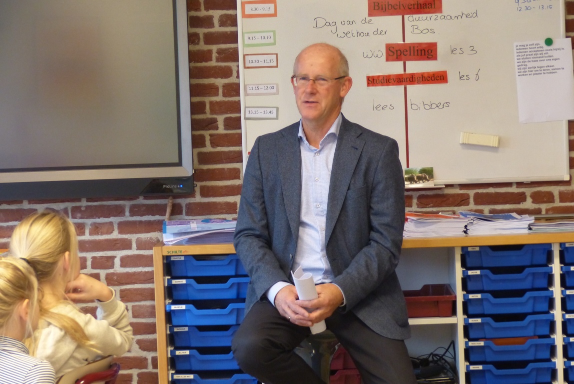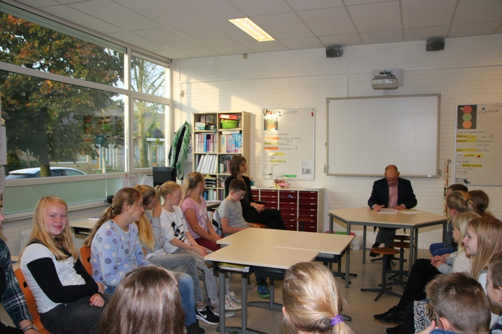 Twee wethouders van de gemeente Kollumerland wethouders Jan Benedictus en Paul Maasbommel. brachten een bezoek aan groep 5/6 en 7/8 van CBS “ Op de Hoogte”. Het is de 9e keer dat de Dag van de Duurzaamheid georganiseerd wordt. Dit jaar lazen de wethouders een verhaal uit het boek: ‘De wereld van voedsel’. Het verhaal ging over duurzaam voedsel en streekproducten. In groep 7/8 werd het verhaal in het Fries voorgelezen.