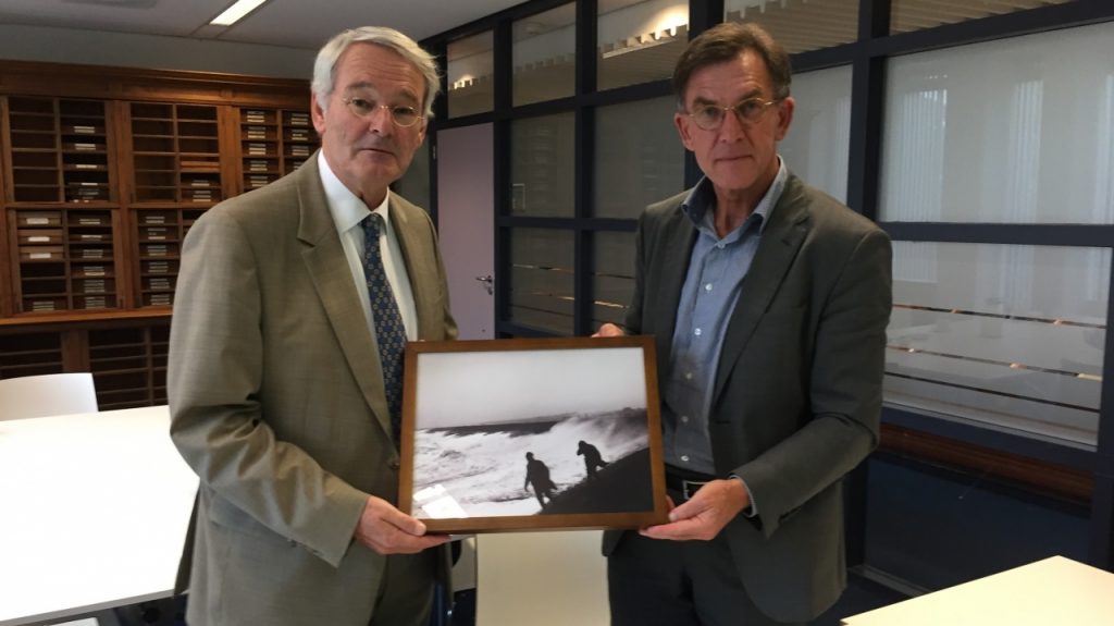 Paul van Erkelens, dijkgraaf van Wetterskip Fryslân, droeg woensdag 27 september officieel een deel van het waterschapsarchief over aan Bert Looper, directeur van Tresoar. Het gaat om ruim 2000 gedigitaliseerde foto’s en dia’s uit de periode van 1890-1990.