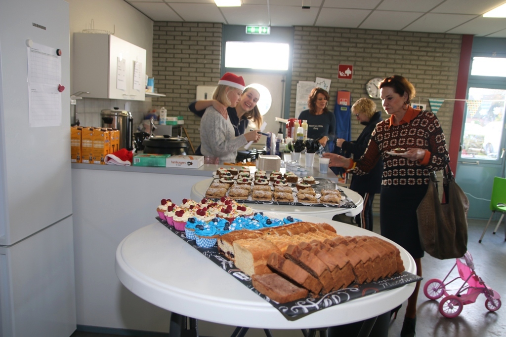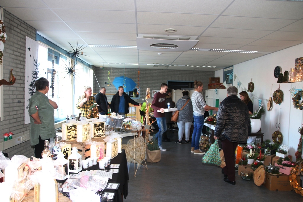 Er waren verschillende standhouders aanwezig met een gevarieerd aanbod zoals kinderkleding, huidproducten, schoonmaakartikelen, vogeltaarten, nagelverzorging, kerststukjes, tassen, sjaals en kansspelen. Ook waren er veel gesponsorde artikelen zoals pepermunt, Friese vlaggen, kerstboompjes, kerststerren en kersthuisjes. ’s Middags kwam de band The Crazy Ones langs voor de muzikale omlijsting. Het was de hele dag gezellig druk, de inwendige mens werd voorzien middels koffie met gebak, warme chocolademelk met slagroom, broodjes hamburger, erwtensoep of poffertjes.