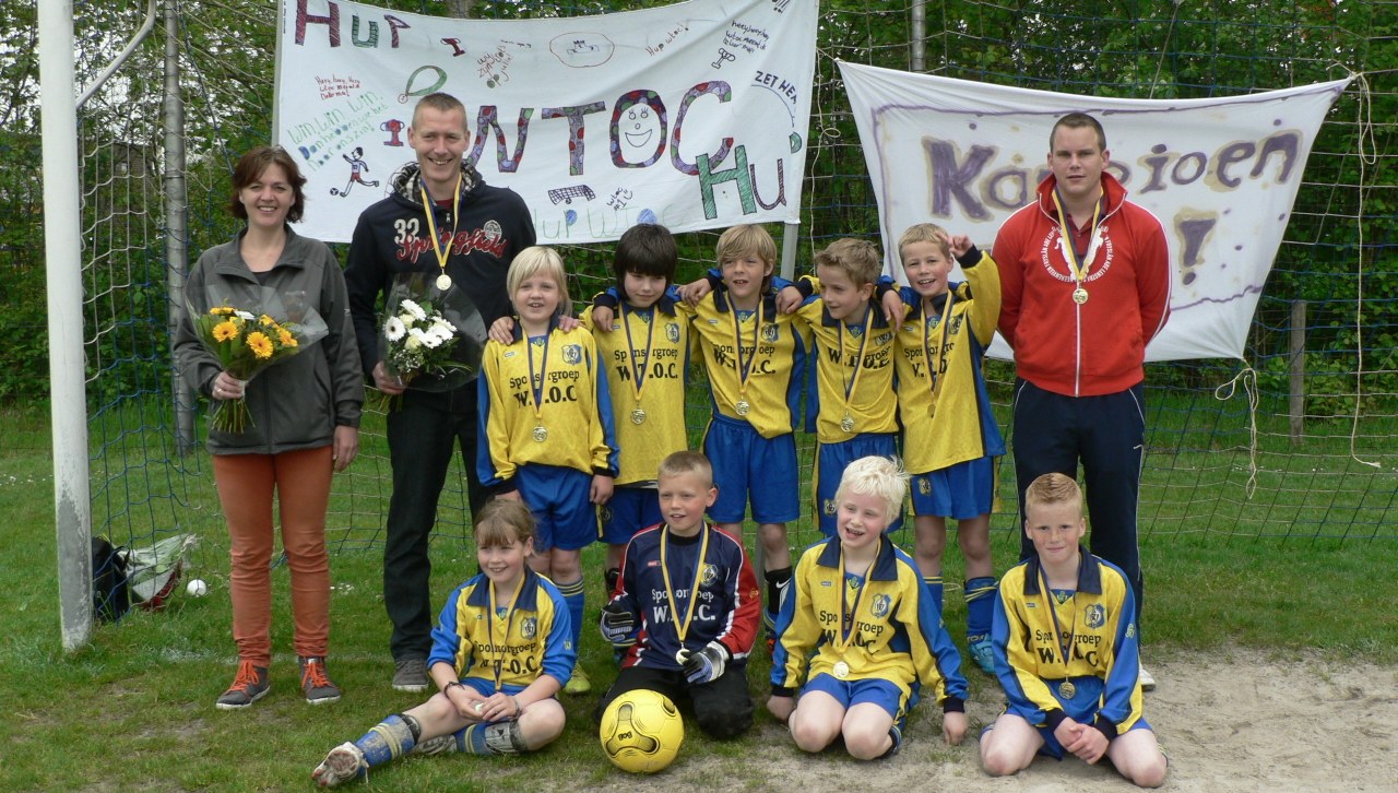 Het kampioenschap was eigenlijk al een feit, maar om dit ook in stijl te kunnen vieren moest er zaterdag 19 mei nog wel even gewonnen worden van Opende F3. Onder aanmoediging van de ouders, broers en zussen en pake’s en beppe’s wisten de pupillen van trainer Dennie de Haan de wedstrijd al gauw naar zich toe te trekken. Uiteindelijk werd de einduitslag 4-1 in het voordeel van WTOC.