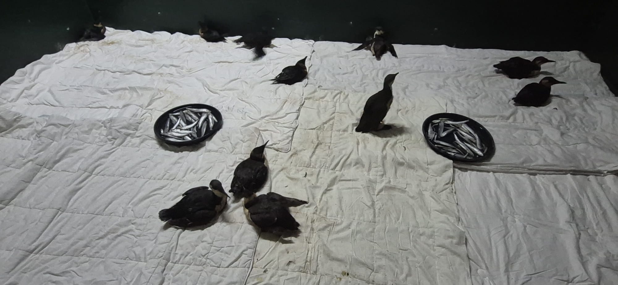 Het gaat om zeven zeekoeten en vijf alken. De Fûgelpits is er in gespecialiseerd om de olie van de dieren te verwijderen en hun goed te verzorgen, zodat ze te zijner tijd weer vrijgelaten kunnen worden.