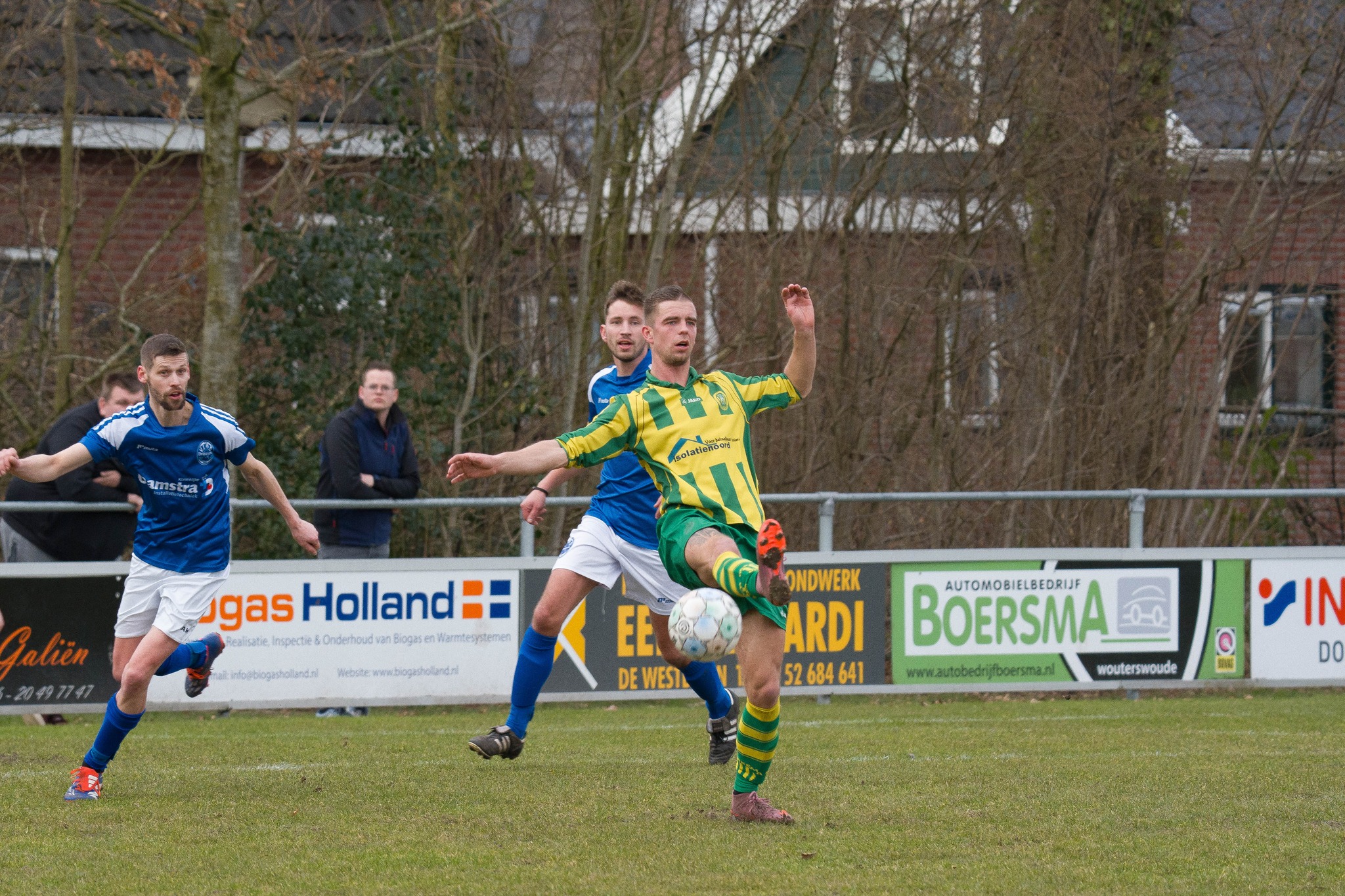 Bij VIOD ontbreken er zaterdagmiddag nogal wat spelers op het appèl en dat laat zich merken. De thuisploeg krijgt voor de pauze twee kansen. Erik van der Veen kan na vijf minuten met een strak schot in de verre hoek goalie Martin Alma niet verontrusten, tien minuten later slaagt diezelfde Van der Veen – door doelman Alma goed naar de zijkant gedreven – er niet in de bal tussen de palen te krijgen nadat hij een te korte terugspeelbal oppikt. Voor het overige is het in de eerste 45 minuten voor de blauwhemden uit de Dokkumer Wâlden vooral een kwestie van tegenhouden.
