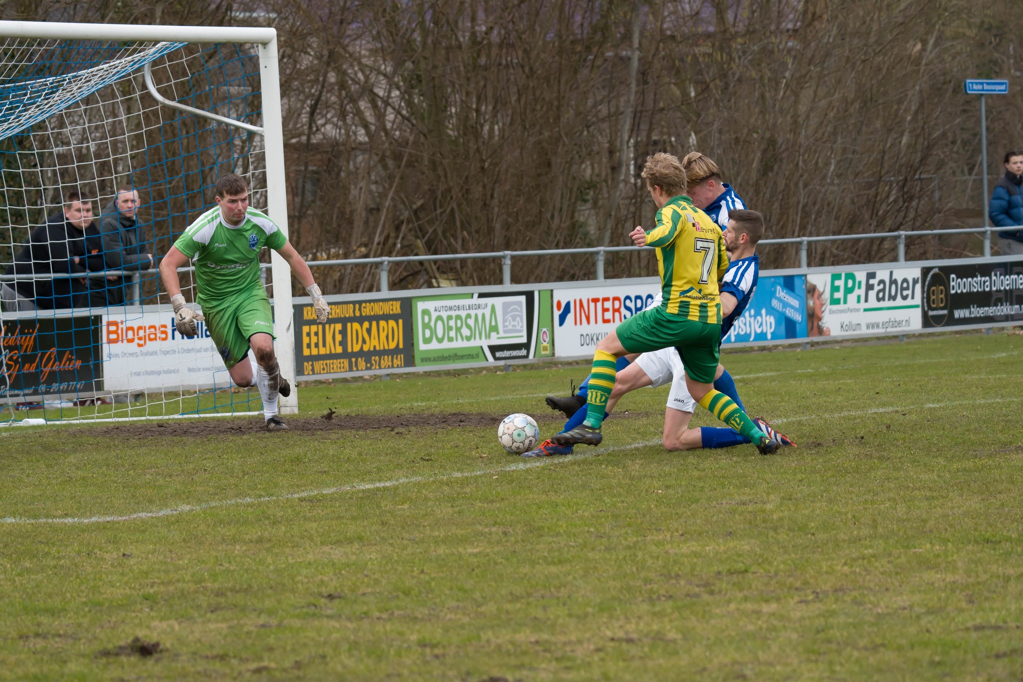 Het is opmerkelijk dat er halverwege slechts een 0-2 stand op het scorebord staat, Harkema is continu bezig het VIOD-doel te belegeren. Alex van der Tuin, Hille Postma en Aize Storm stuiten in kansrijke positie op keeper Van Meekeren, inzetten van Paul van der Heide en Sytze Wouda vliegen rakelings naast en over. Dat het aluminium tweemaal redding brengt helpt de gastheren ook een handje. Een knal van Jesper Hoeksma strandt op de binnenkant van de paal, Hille Postma ziet zijn kopbal via de vingertoppen van keeper Van Meekeren en de lat over het doel verdwijnen. In minuut 30 en minuut 35 moet de Driezumer keeper het antwoord schuldig blijven. Eerst is het Aize Storm die een rebound uit een afstandsschot van Sytze Wouda verzilvert, vijf minuten later knikt uitblinker Wytse Couperus een vrije trap van Alex van der Tuin in de touwen.