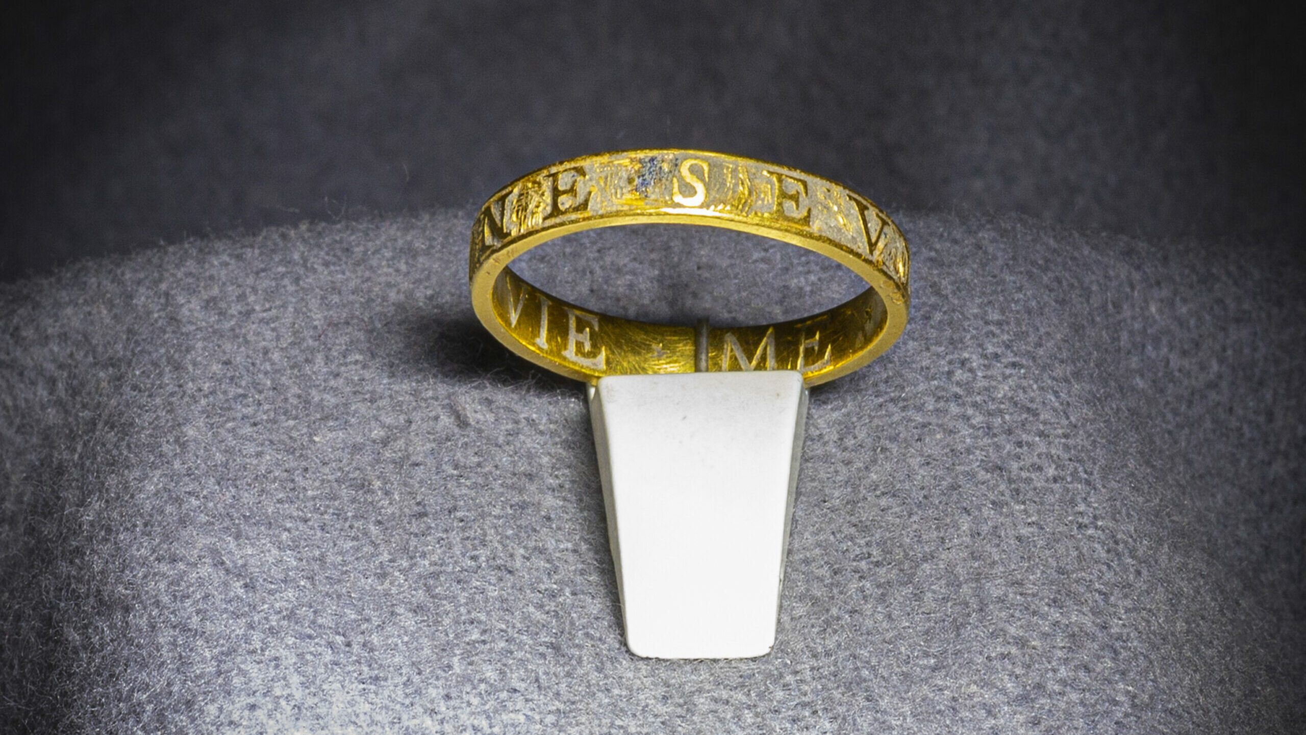 De ring is aan de binnenzijde voorzien van de liefdesinscriptie: ‘TUE MA VIE ME’ (jij bent mijn leven) en aan de buitenzijde staat de tekst: ‘SEULE POUR UNE’ (alleen voor jou).
