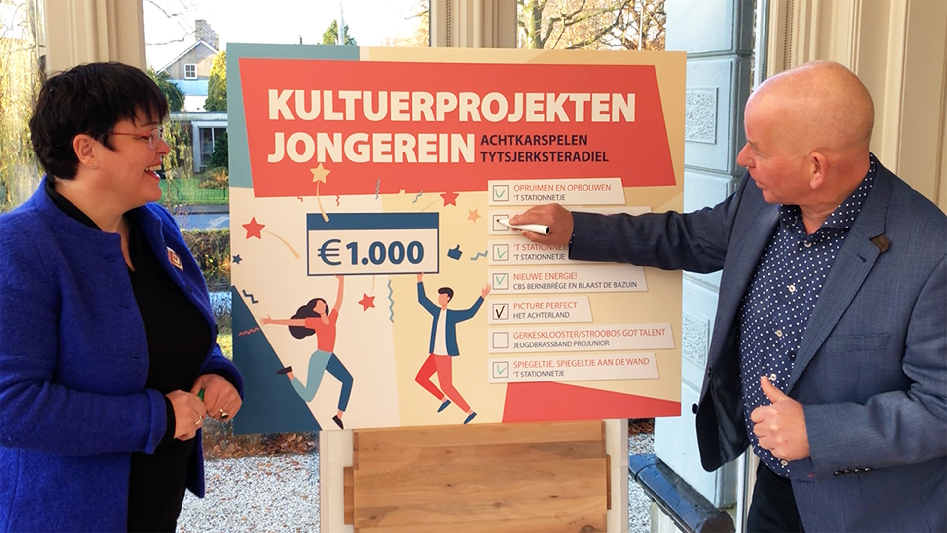BUITENPOST/OENTSKERK – Voor de zomer deden de gemeenten Achtkarspelen en Tytsjerksteradiel een oproep aan jongeren om mee te denken met het cultuurbeleid. Jongeren werd gevraagd een eigen cultuurproject te bedenken. Het leukste project krijgt € 1.000 om het ook echt uit te voeren. Dinsdagavond 17 november zouden de projecten gepresenteerd worden en zou de winnaar worden gekozen. Door de aangescherpte maatregelen kon deze avond niet door gaan en zijn de winnaars via een video bekend gemaakt door de cultuurwethouders Tytsy Willemsma en Max de Haan. ‘Wy binne sa entûsjast oer de kulturele projekten fan de jongerein, dat we besletten ha se allegearre te beleanen mei tûzen euro’, zegt wethouder Willemsma. ‘It moat wer brûzje. Us nije kultuernota hjit net foar neat út de kûlizen.’