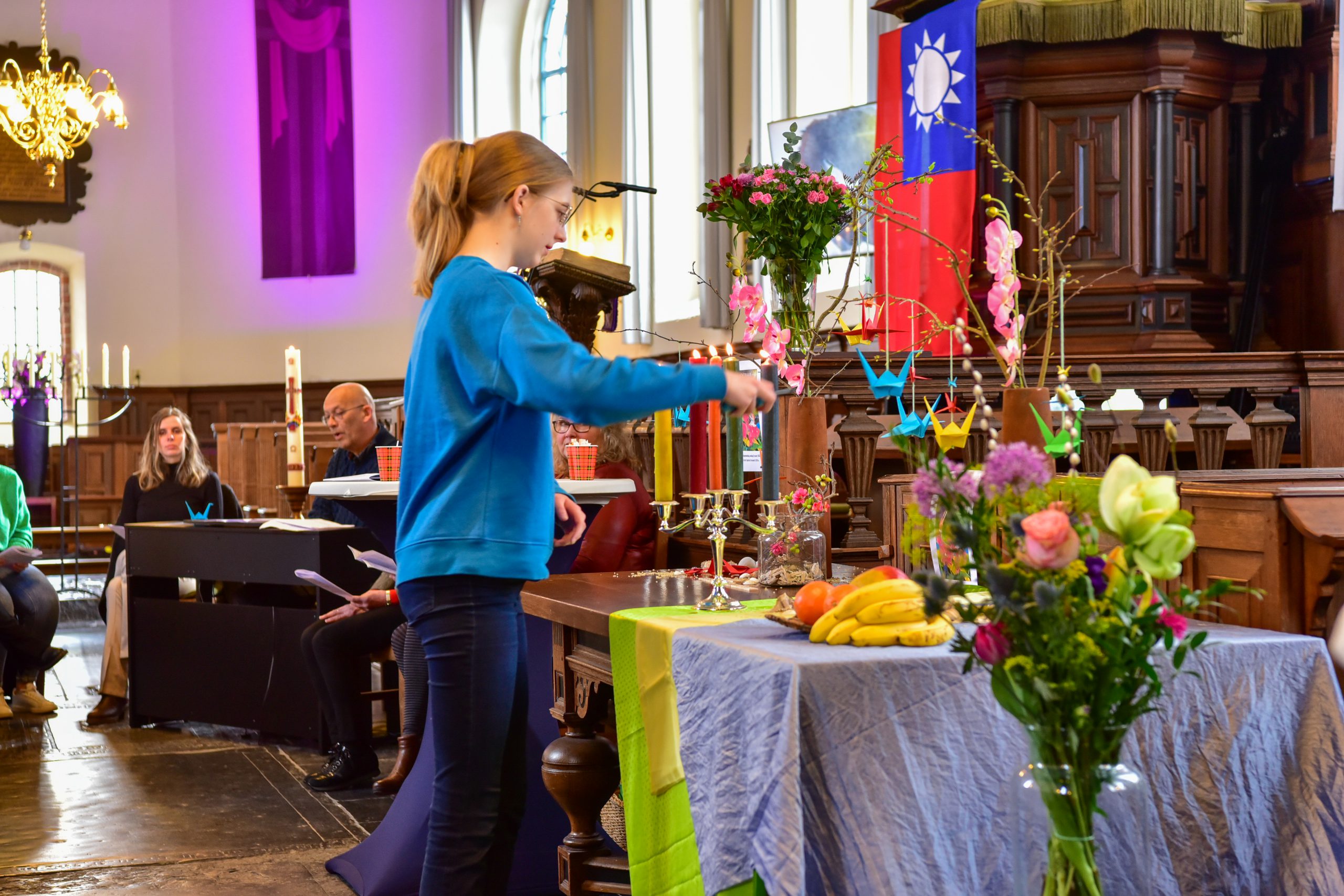 TERNAARD – Zondag 5 maart vond de jaarlijkse Wereldgebedsdag plaats in de Grutte Tsjerke van Ternaard. De kerk was prachtig aangekleed met kleuren en de sfeer van het themaland van dit jaar: Taiwan met als thema: ‘Zichtbaar geloven’ Ik heb gehoord van jullie geloof