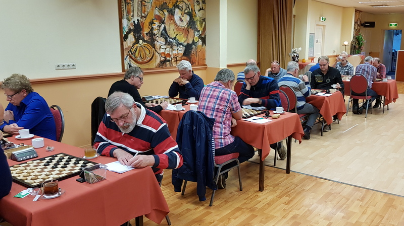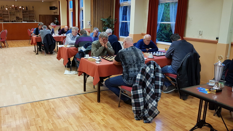 Tevens werd de barrage gespeeld om het algeheel Fries kampioenschap. Nadat het in de eerdere 4 barrages niet was gelukt wist Erwin Heslinga uit Leeuwarden nu in de eerste match tegenstander Piet Tuik te verslaan. Erwin is hiermee kampioen 2018 in Friesland. Op de foto de man rechts.