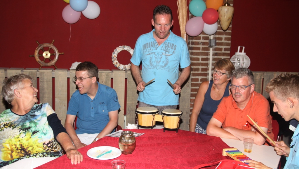 Na de barbecue en het koud buffet werd het feest voortgezet met muziek en plezier met op treden van Hein Kaptein. Muziek is Evert z’n grote liefde. Hij schrijft muziek, maakt muziek en leert anderen graag muziek maken. Ook was er kararoke zingen door de bewoners. Op het einde van de avond werd de polonaise gedanst het werd één groot feest. Iedereen ging tevreden naar huis.