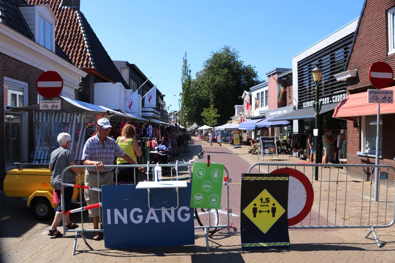 Standhouders en bezoekers dienden zich echter wel te houden aan de RIVM richtlijnen, zoals vermeld op de toegangsborden. Ook is er een één richting looproute noodzakelijk om de onderlinge afstand te kunnen garanderen. De looproute was vanaf De Kringloop winkel aan de Voorstraat naar het oude gemeentehuis aan de Voorstraat. Een gedeelte van de Brede Reed is opgenomen in de route. Voor de organisatie was het weer een geslaagde braderie. ,,Het is zomer toch, dus dan willen we ook zomerse temperaturen. Je hoort ons niet klagen!”, zegt Arjen Mout, voorzitter van de ondernemersvereniging.