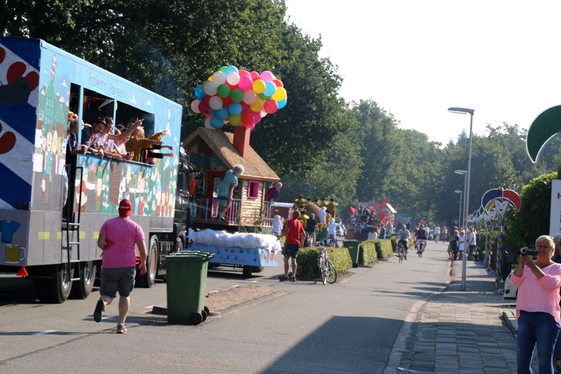 Weken lang werd er in schuren en garages druk gewerkt aan de versierde wagens maar donderdagmorgen 8 september was het zover om aan het publiek het resultaat te laten zien. Door de zomerse temperaturen stond er veel publiek langs de route.