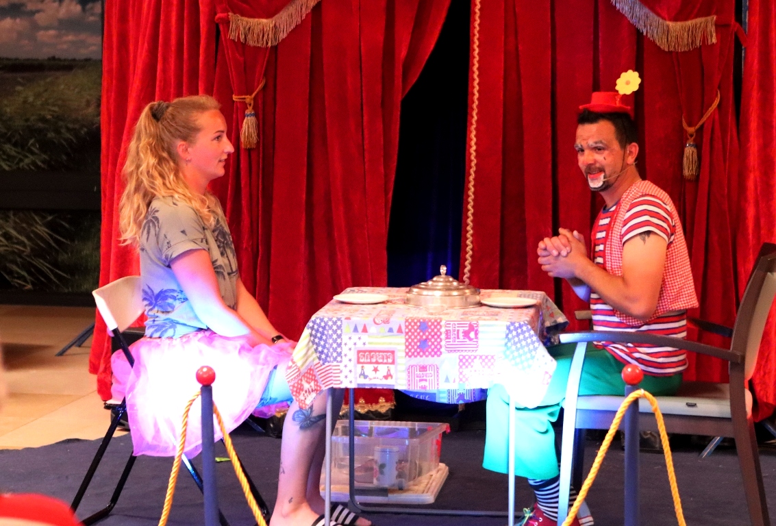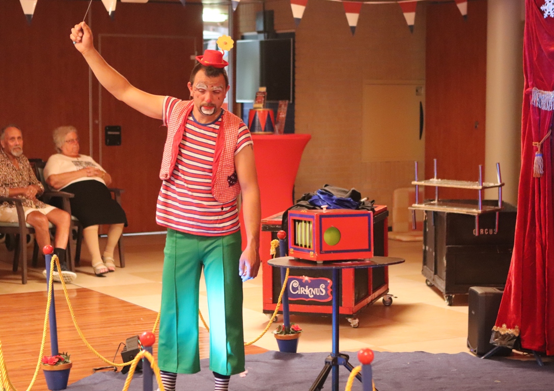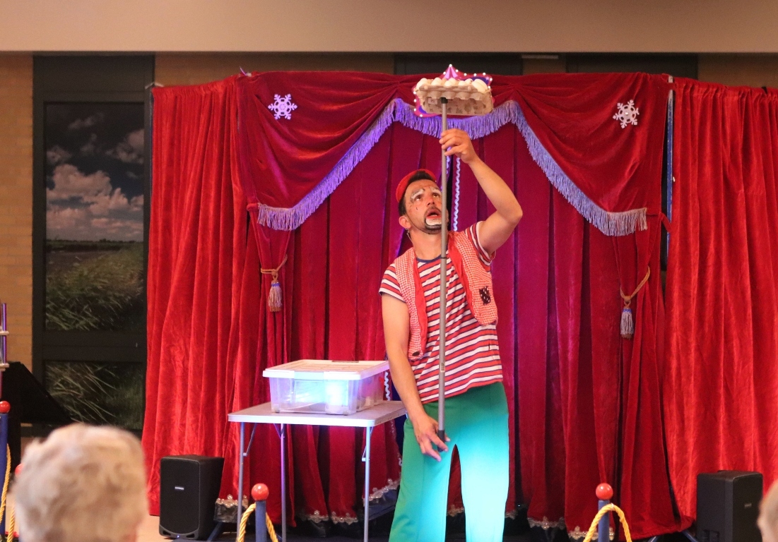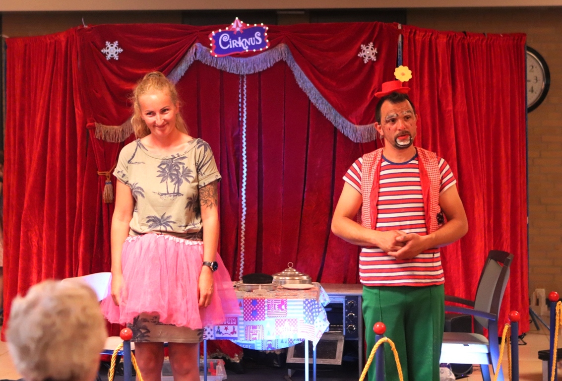 KOLLUM – De hele maand juni staat er van alles te gebeuren in Meckama State in het kader van ik hou van Holland. Het Stateplein werd deze dag omgetoverd in een gezellige circus sfeer. Tweemaal werd er een voorstelling gegeven waar bewoners van konden genieten.