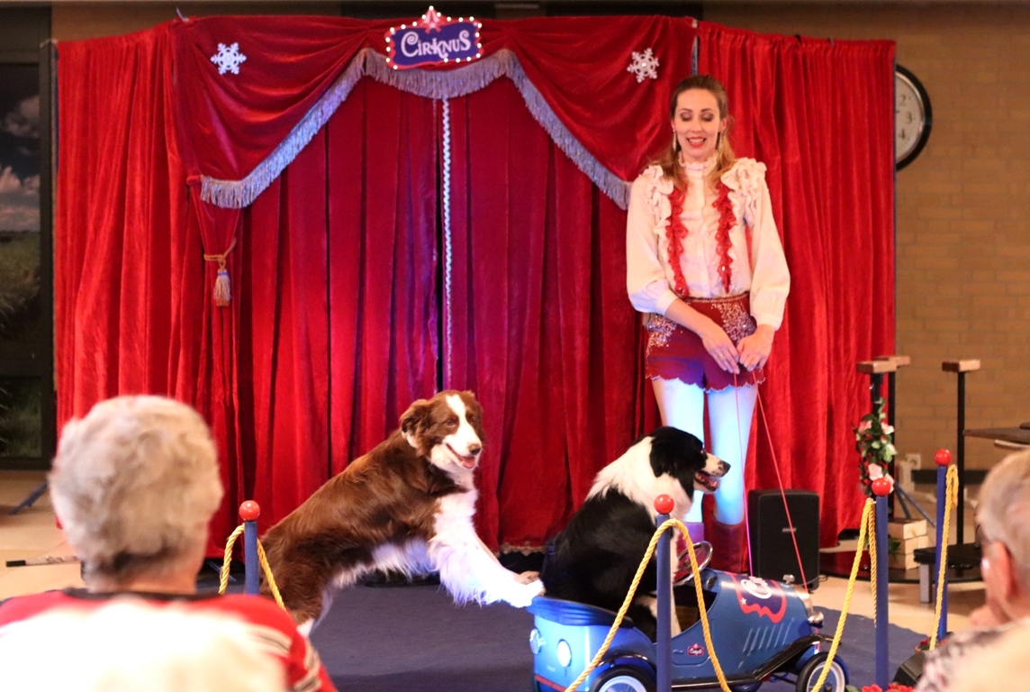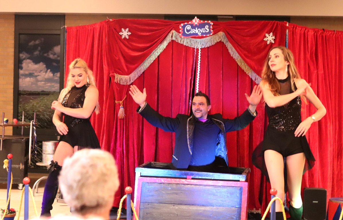 KOLLUM – de hele maand juni staat er van alles te gebeuren in Meckama State in het kader van ik hou van Holland. Het Stateplein werd deze dag omgetoverd in een gezellige circus sfeer. Tweemaal werd er een voorstelling gegeven waar bewoners van konden genieten.