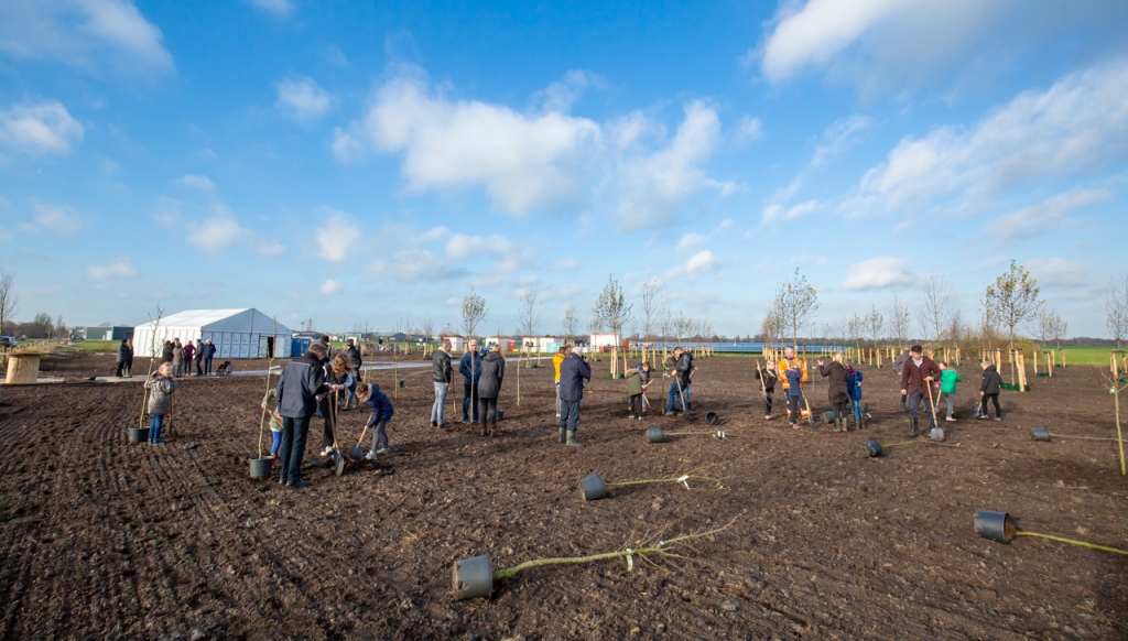 Na het openingswoord zijn de kinderen opgedeeld in twee groepen. Eén groep begint in de tent met het maken van zaadbommen. Dit gebeurt onder begeleiding van It Fryske Gea. De andere groep rent snel naar de bomen. Onder groot enthousiasme planten de kinderen de fruitbomen. Na een tijdje wordt er gewisseld. De omstandigheden zijn gelukkig goed en de regen blijft achterwege. Na afloop genieten de kinderen van een warme chocolademelk met slagroom en een broodje knakworst in de tent. De opening van het zonnepark is een groot feest. Aankomende maandag of dinsdag wordt het park geactiveerd en zal het park daadwerkelijk stroom opwekken.