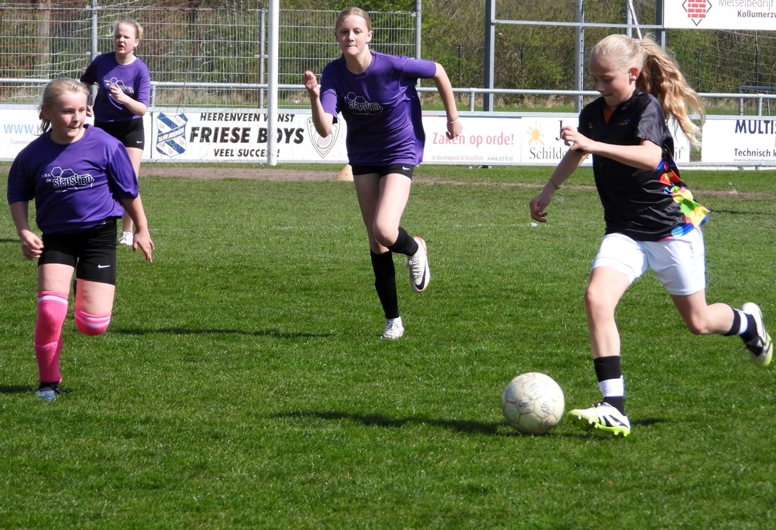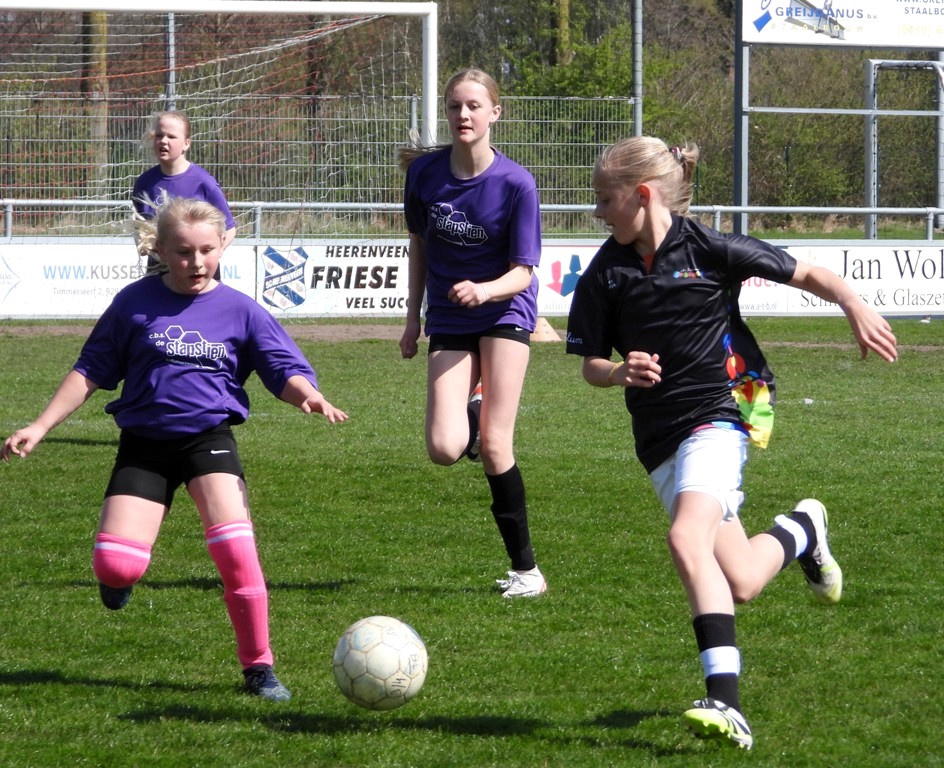 In de meidenpoule liet de Casimirschool uit Kollum zien een klasse apart te zijn. Met overtuigende overwinningen (tweemaal 9-0 en eenmaal 10-0) eindigden zij ongeslagen op de eerste plaats, met maar liefst 28 doelpunten voor. Een indrukwekkende prestatie. Stapstien meiden 2 eindigde knap als tweede, terwijl Stapstien meiden 1 de derde plaats bezette.